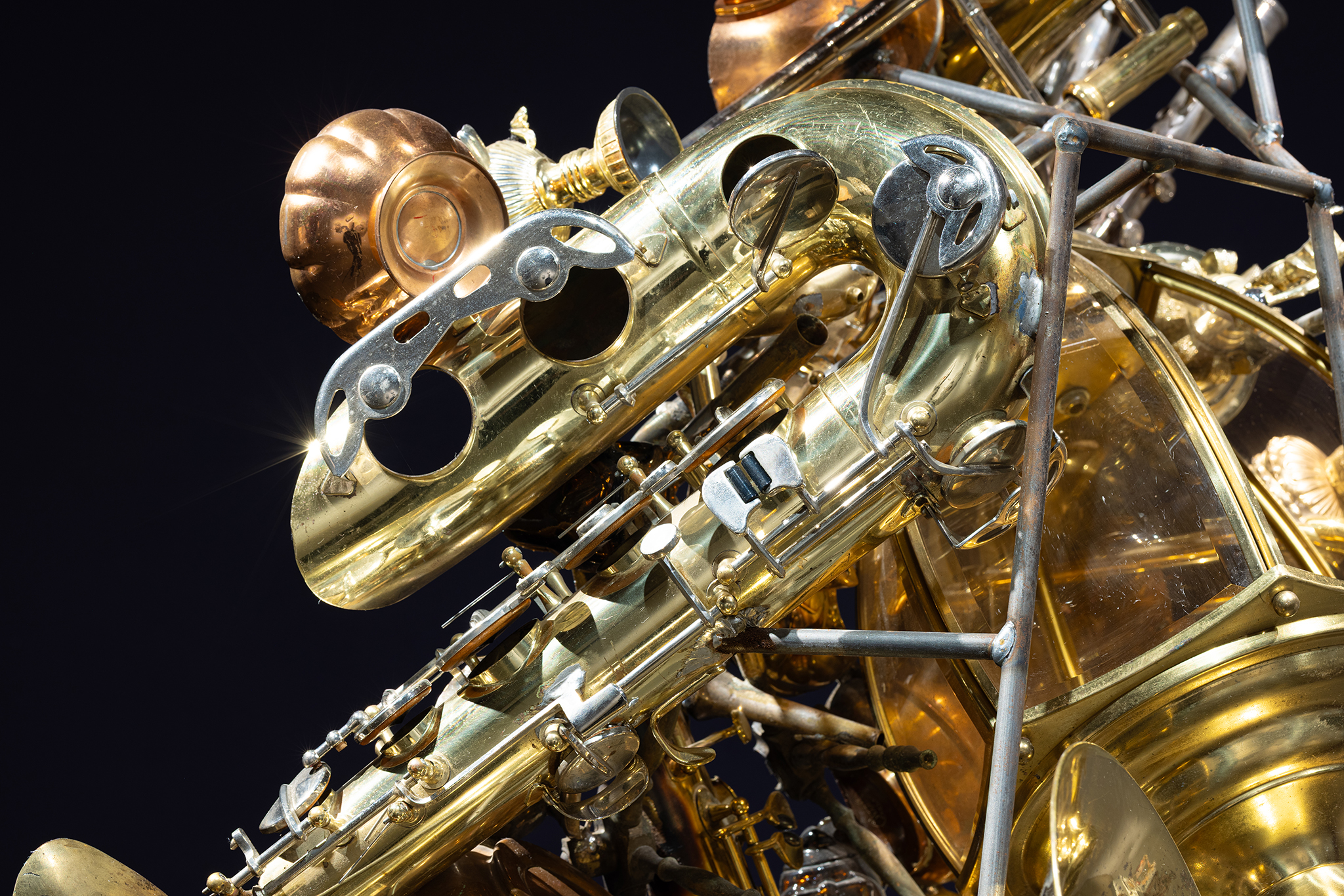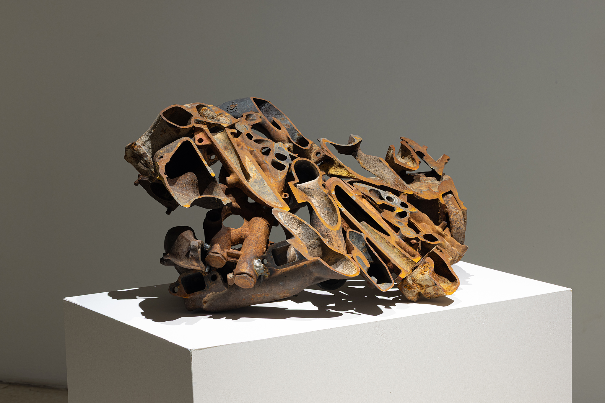 Sous forme de collages tridimensionnels, les sculptures deviennent alors des condensés de temps et de matière, où chaque fragment conserve la trace de son origine tout en étant transformé par son association à d’autres éléments. La matérialité n’y est pas envisagée comme un simple support, mais comme une force active, capable de produire du sens, de résister à la fixité et de suggérer de nouvelles lectures de notre ère actuelle. Ainsi, ces œuvres ne se contentent pas de documenter le monde; elles en proposent une stratigraphie alternative, faite de juxtapositions, de fractures et d’agencements inattendus.