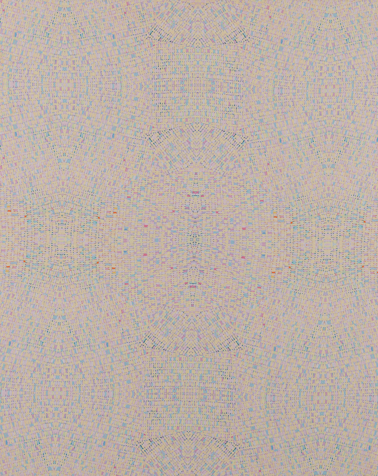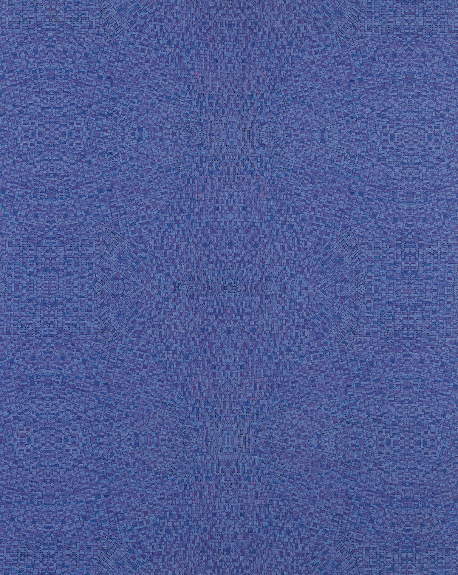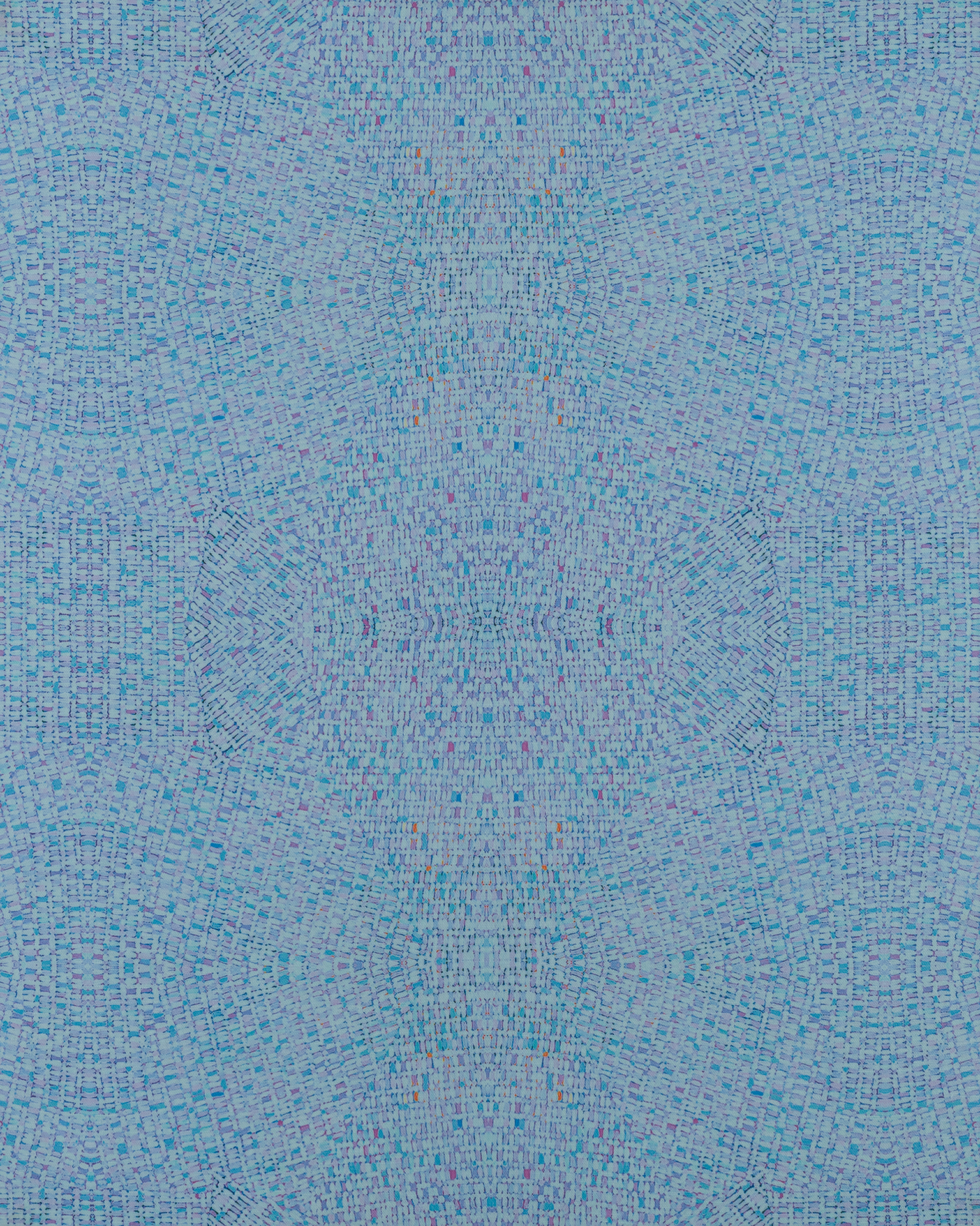 Nobel’s patterning gestures towards organic symmetry that is found throughout the natural world and the cosmos alike. Drawing on Paul Klee’s conception of colour as “an organic whole in motion” (The Thinking Eye, 1961), Nobel extends this theory into a contemporary language of fluid abstraction. Her chromatic fields appear to breathe, generating movement and rhythm that resonates as both spatial and temporal. Within this movement, pigments behave like pulses, vibrating through fields of light and shadow, guiding the viewer’s eye along elliptical trajectories that echo planetary paths and the beating of a heart.